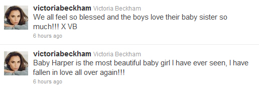 Victoria Beckham would like you to know that her daughter Harper Seven is much prettier than your daughter. Obviously. Victoria isn?t going to say it like that, of course. She?s merely going to declare, ?Baby Harper is the most beautiful baby girl I have ever seen. I have fallen in love all over again! We all feel so blessed, and the boys love their baby sister so much? on Twitter. Of course mothers will always think their baby is the most beautiful, the most special, the brightest, etc. Posh is no different in that respect. But it certainly feels like there?s a hint a judgment, right?